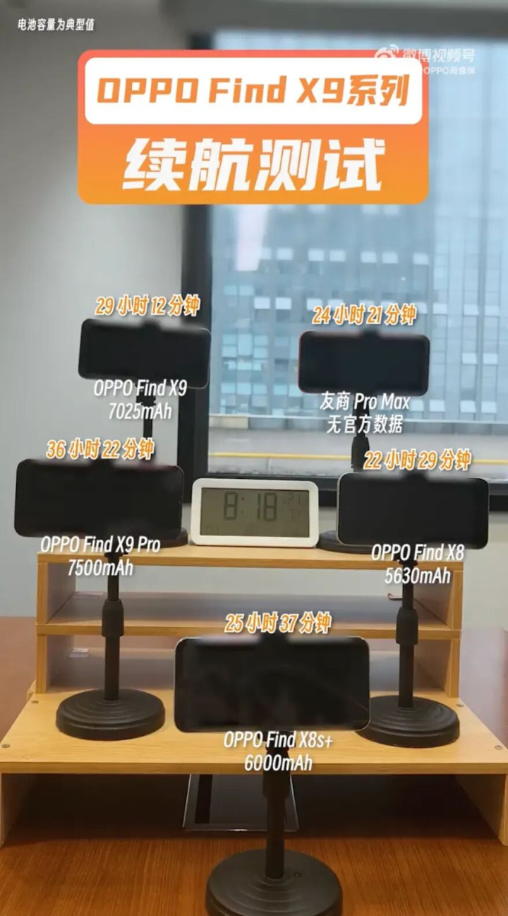 此前,OPPO还展示了 Find X9 系列的续航实测视频。