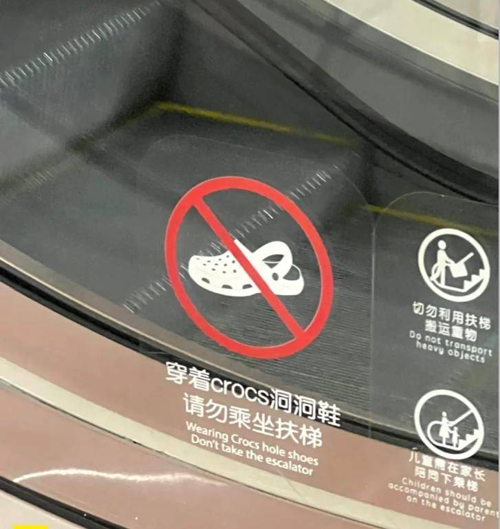 关于“电梯吃鞋”的事件也不再少数,有很多扶梯已经贴出了指示牌,禁止穿洞洞鞋上扶梯,奉劝大家再喜欢洞洞鞋,也不要长时间穿着。