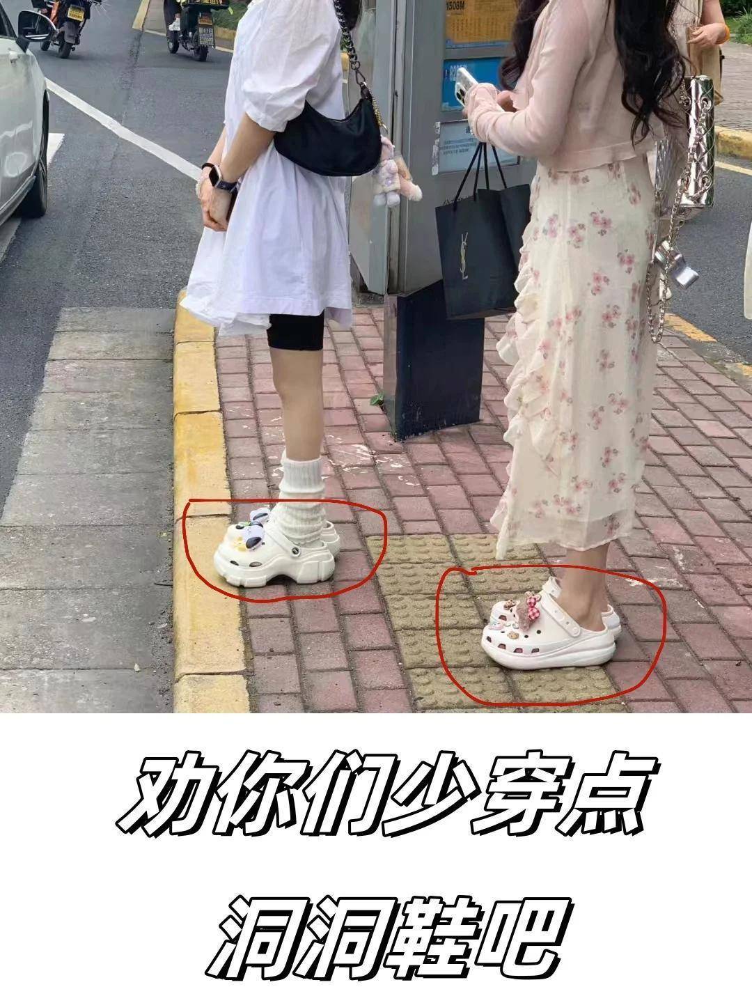 如果长时间穿着洞洞鞋,甚至会让你变成扁平足,另外,由于洞洞鞋本身过于柔软,长时间穿着也会影响腿型,导致小腿外翻等各种问题。