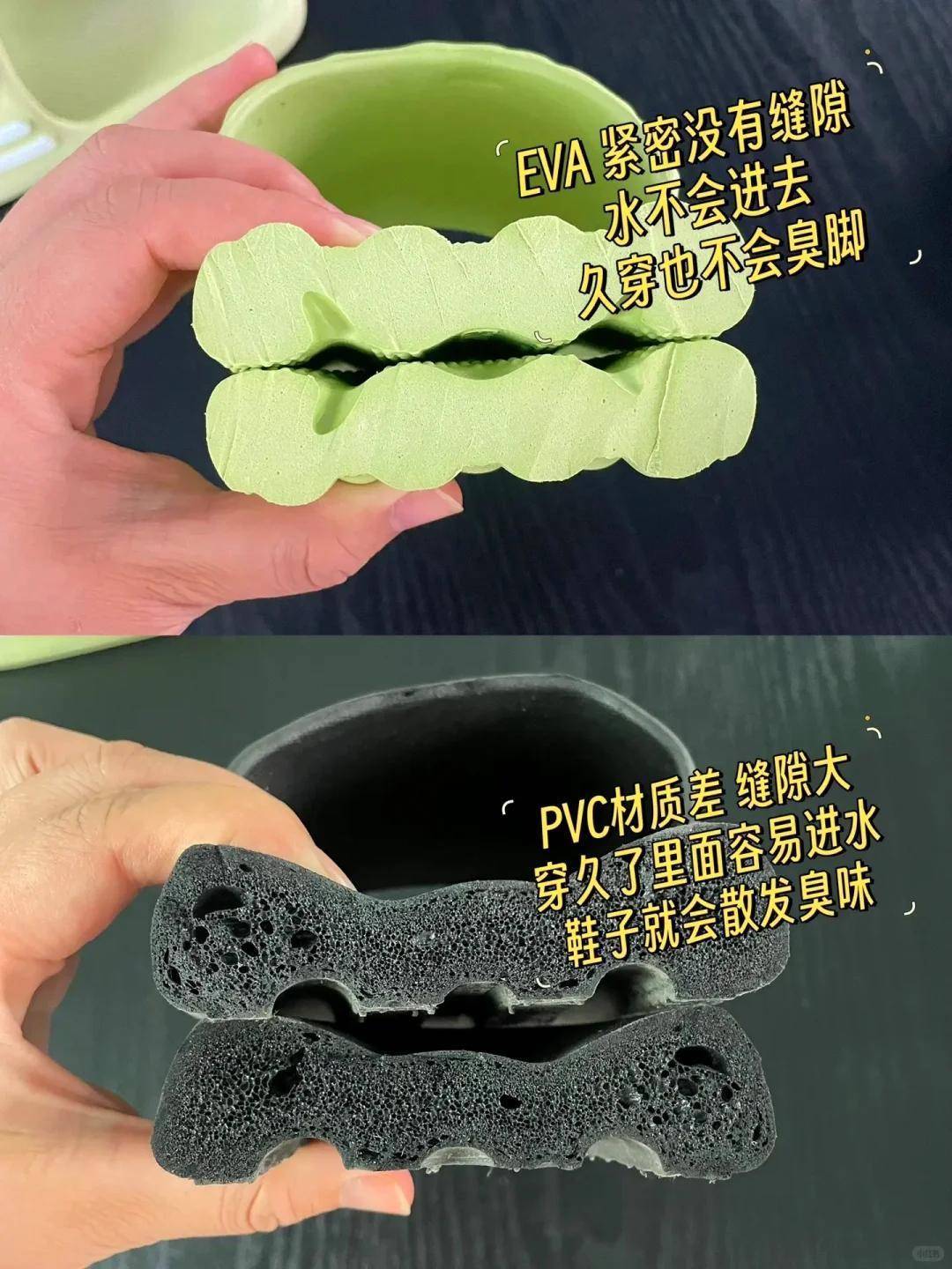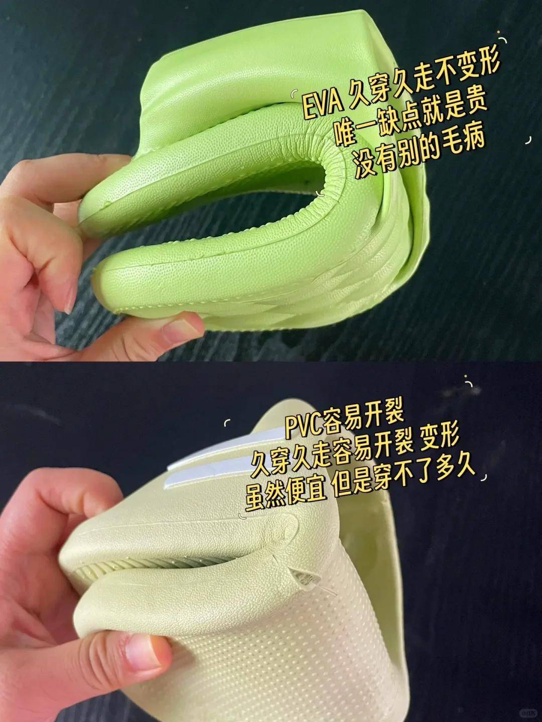 家居拖鞋一定要看清楚材质,千万不要选择pvc材质的塑料拖鞋。很多人不懂,认为都是塑料拖鞋有什么不一样,其实现在市面上的拖鞋分为pvc材质和eva材质,