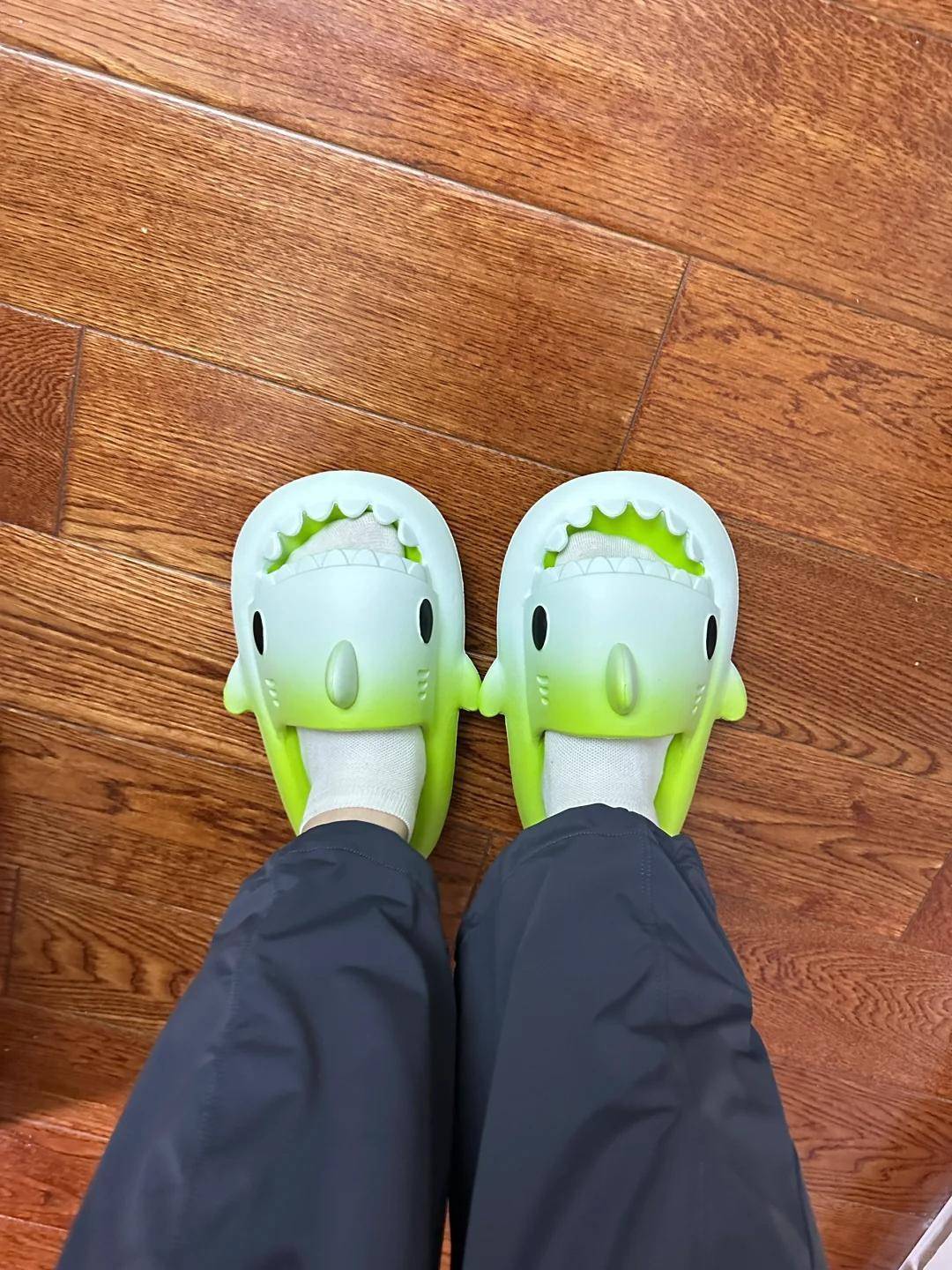 特别是小孩子,不要给儿童穿着这种鲨鱼造型的拖鞋,容易摔倒发生危险,为了孩子的安全,尽量给孩子选择造型比较简单的拖鞋。