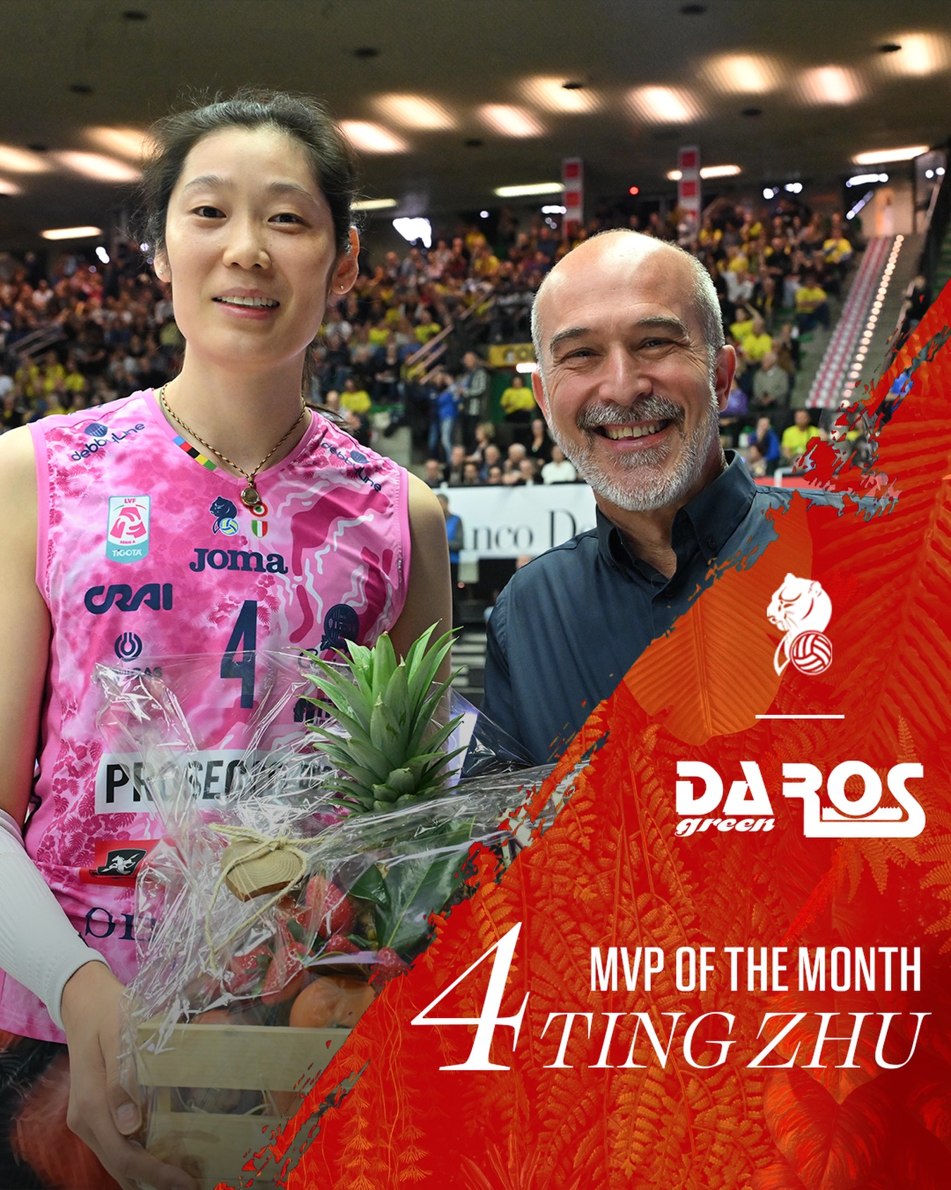 属于女排奥运冠军朱婷的高光时刻,在不断上演,北京时间3月31日,科内利亚诺女排官方宣布,朱婷荣膺俱乐部2月最有价值球员MVP,这一奖项由赞助商代表现场颁发,也再次印证了她在球队中的核心价值。